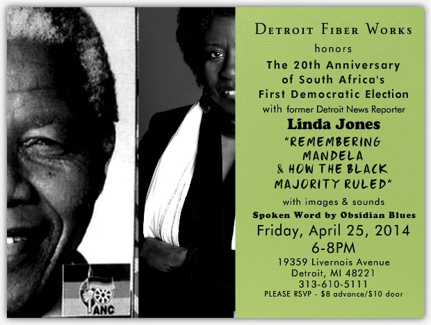 Please join us at Detroit Fiber Works for a multi-media presentation and conversation with journalist, Linda Jones and spoken word by a dynamic group of young Detroiters, Obsidian Blues.